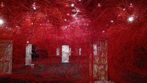 赤く張り巡らせた血管のような毛糸の空間は