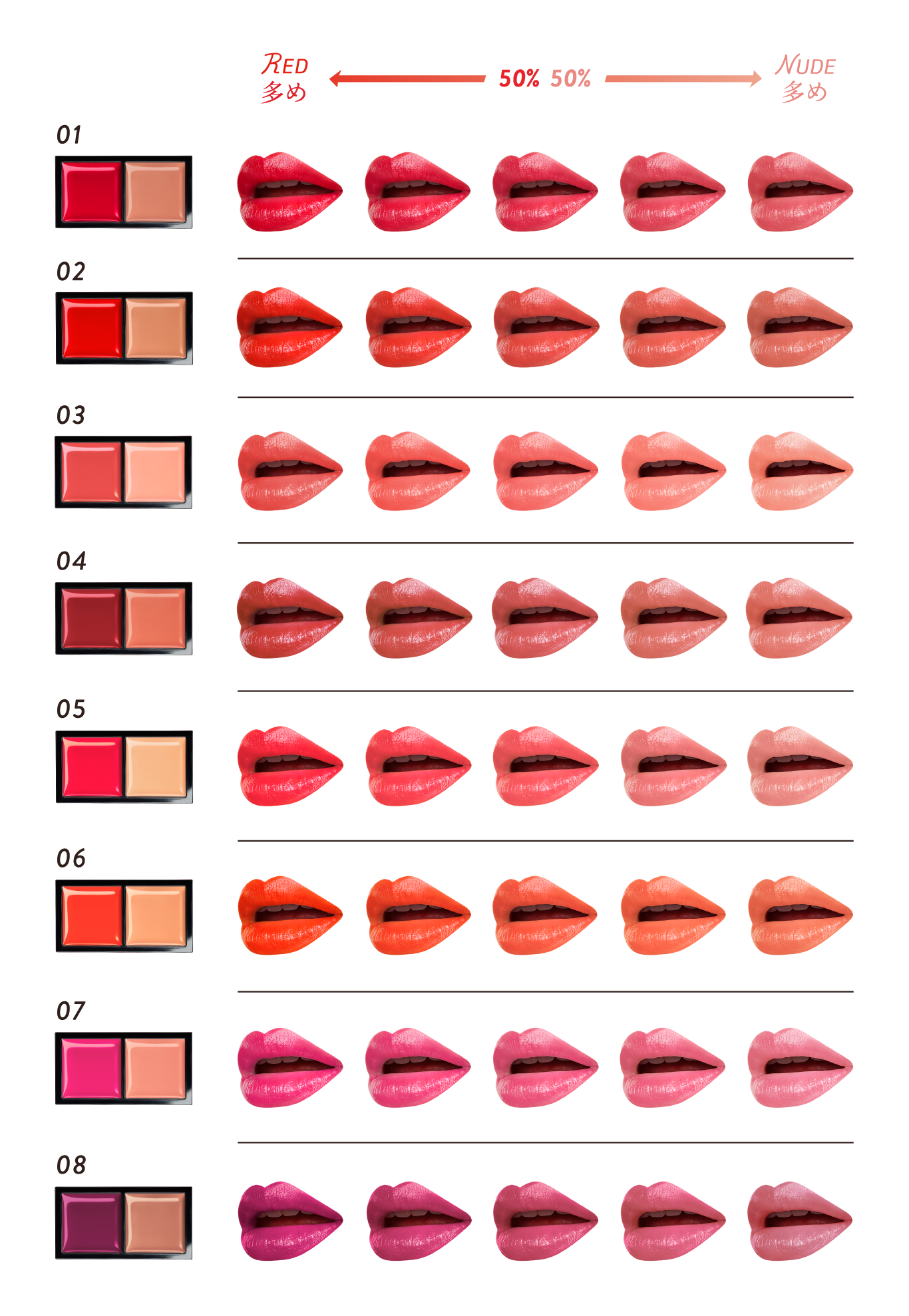 レッドヌードルージュのカラーは全部で8種類