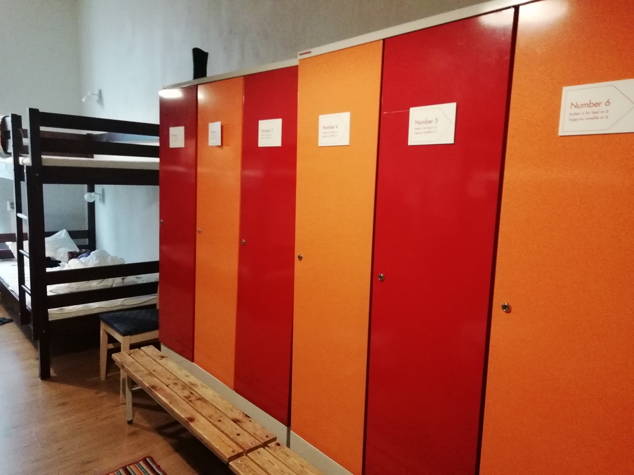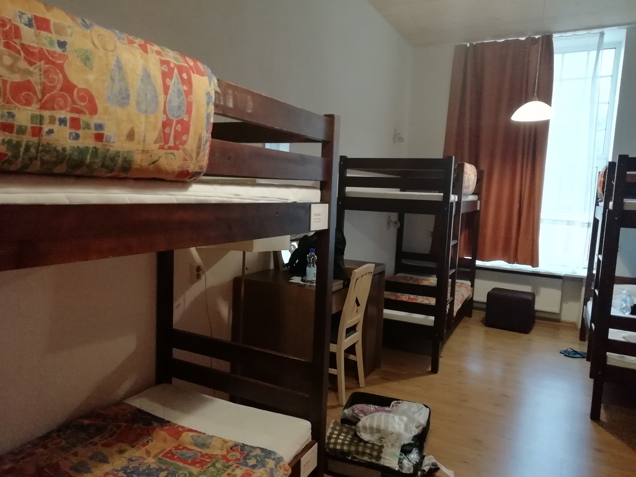 階段を上がって左側が女性用ドミトリー部屋