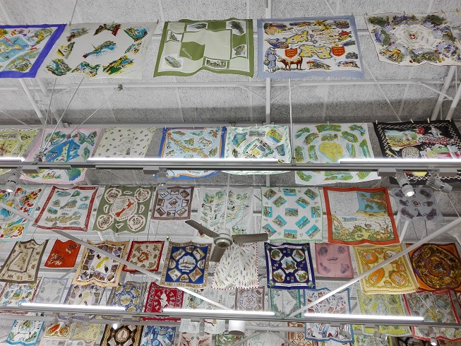 旅先で手に入れるお土産のスカーフが天井にずらっと