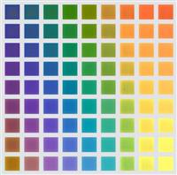 大きさが違う四角形を組み合わせると色が混ざり、黒も表現できる。