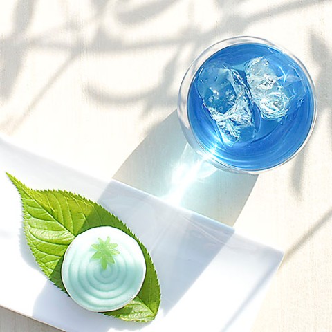 「佐藤錦」が香る青い水色のフレーバー緑茶は