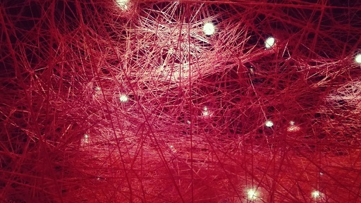 赤く張り巡らせた血管のような毛糸の空間は