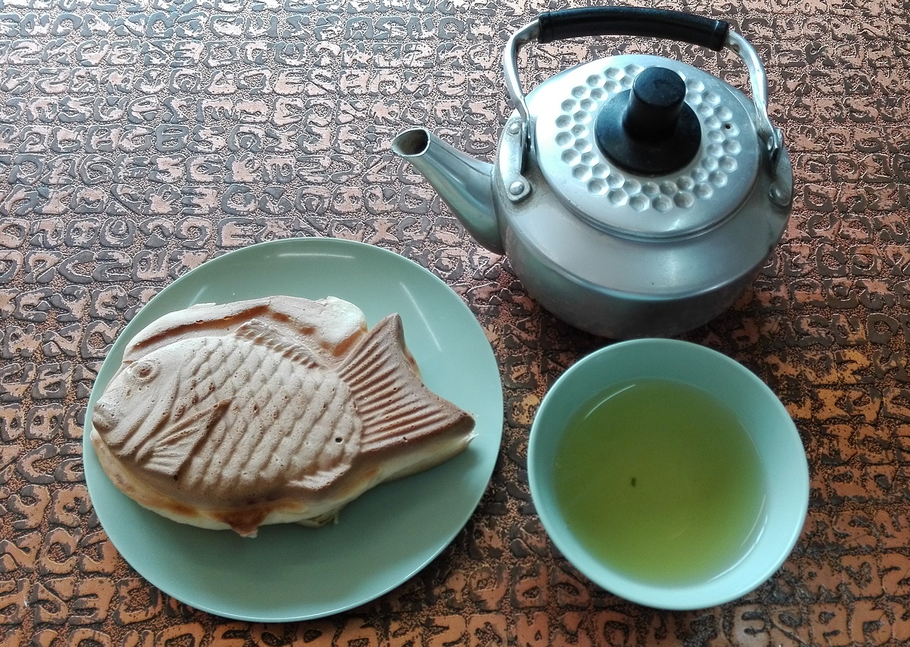 駅前の高田万十で黒あんたいやき お茶までいただいた